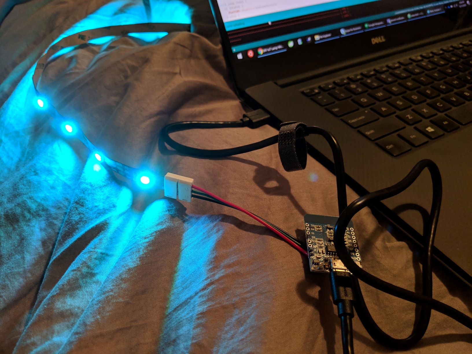 This effect makes use of the addressable nature of WS2812B strips. Up until this point, all FastLED operations had been applied to the entire strip. However, this one has varying brightness of LEDs at the same time.