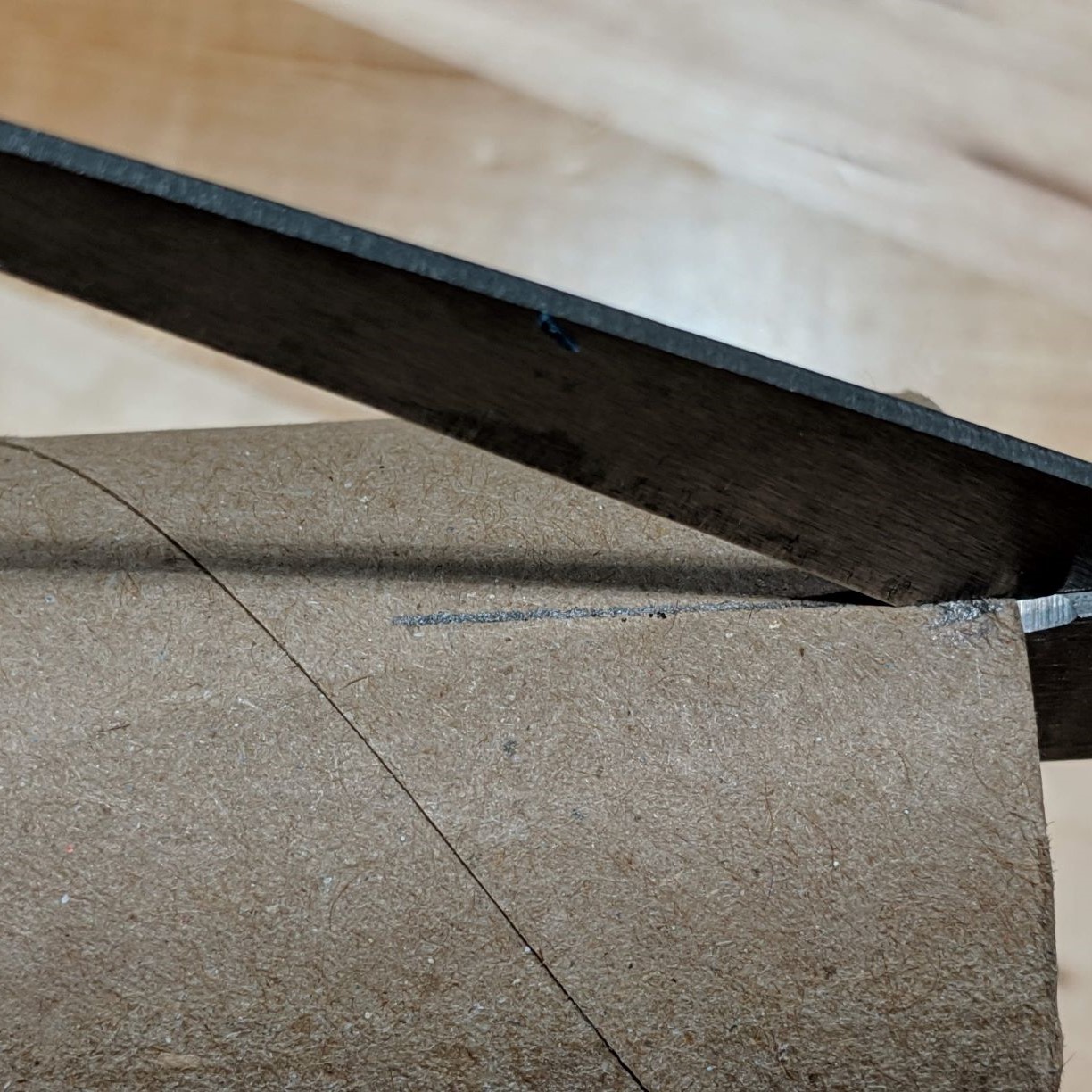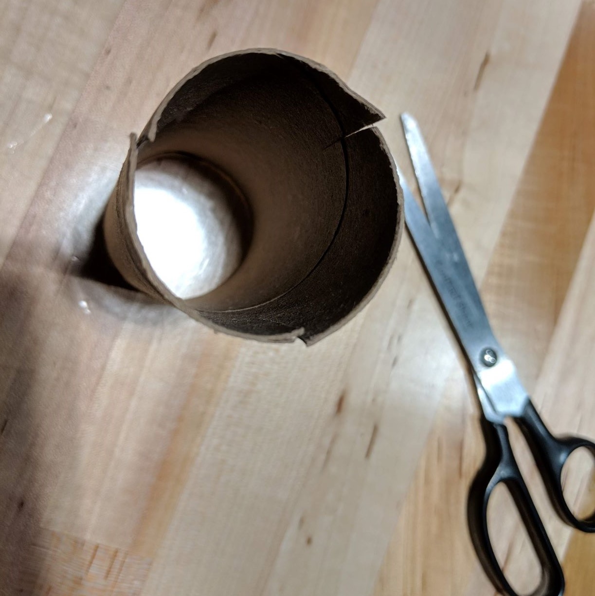 Using the cut guide, cut three 1" slits up the cardboard tube
