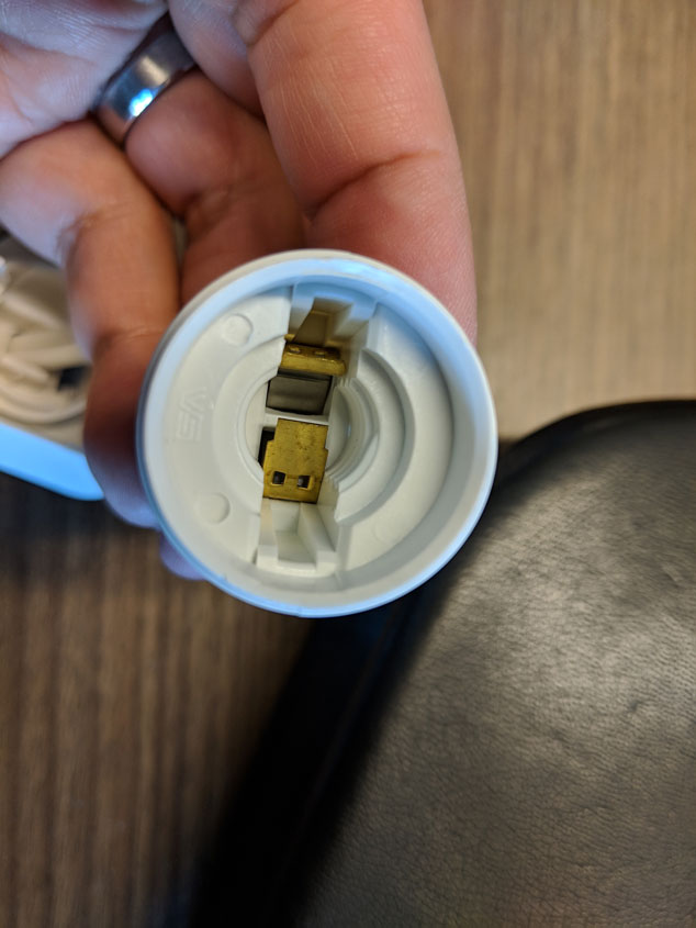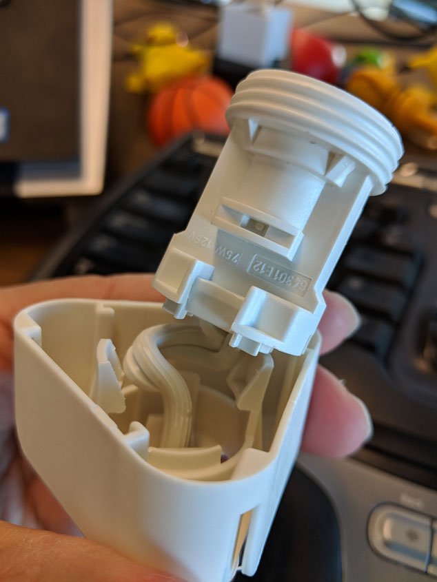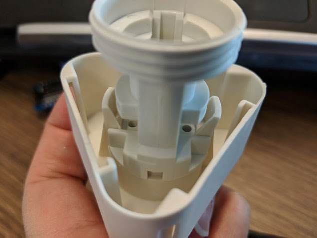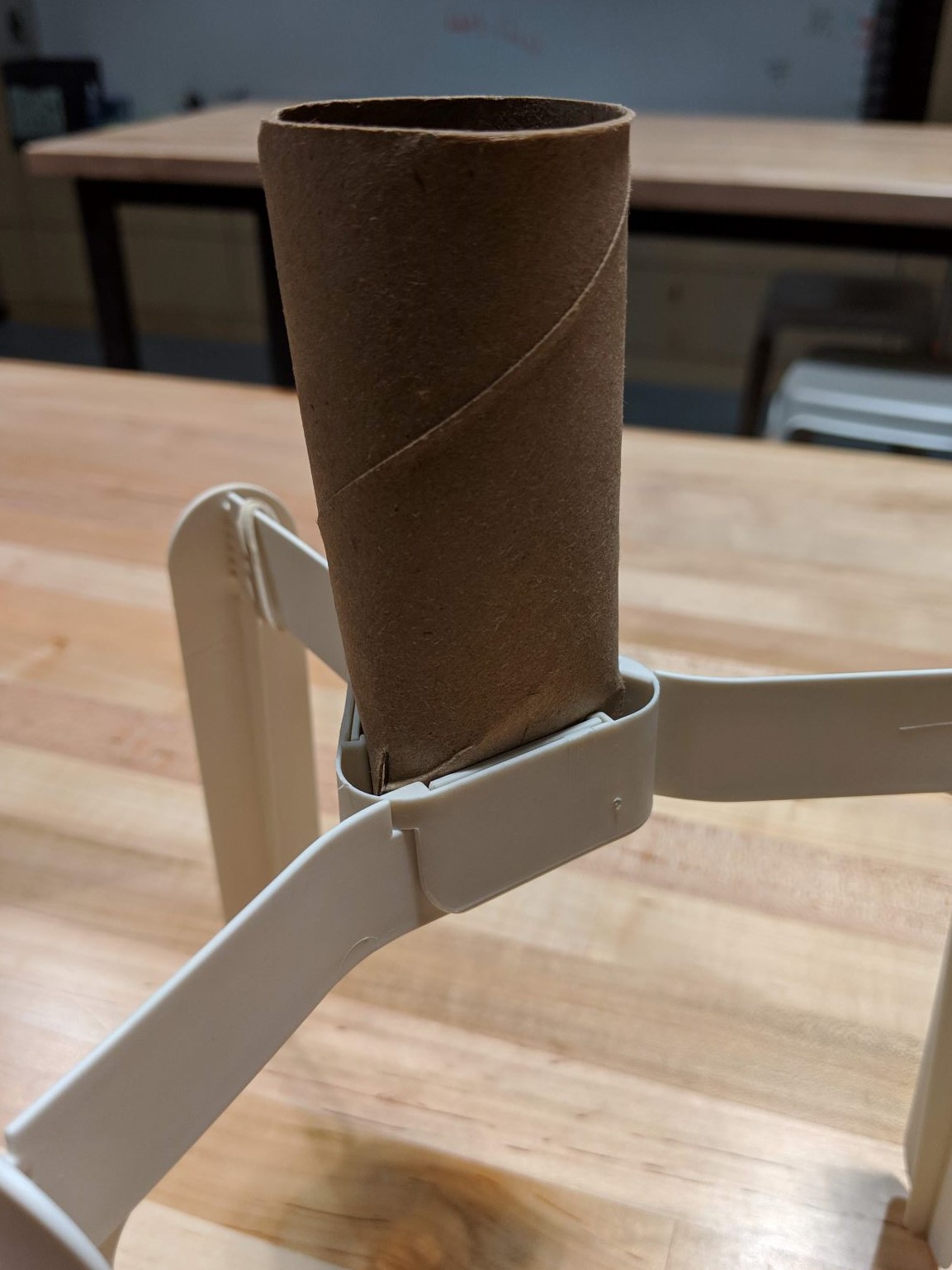 Squeeze the bottom of the tube into a triangle shape that fits snugly into the base.